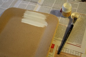 J’ai peint une couche de blanc sur le plat en MDF pour que les couleurs du papier ressortent bien. Pour les papiers foncés, ce n’est pas nécessaire.