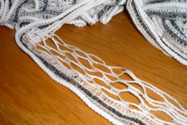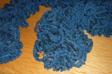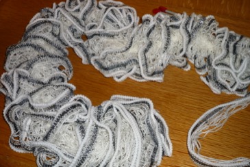 Avec cette laine, à part des écharpes, je ne sais pas trop ce qu’on peut faire. Si vous avez des idées, n’hésitez pas.